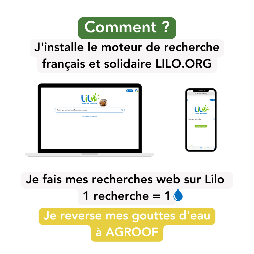 Agroof rejoint le moteur de recherche solidaire Lilo.org. A la clé ? La possibilité pour chacun de nous soutenir gratuitement pour le projet de Roumassouze avec un moteur de recherche français qui transforme les recherches Internet en argent et ne collecte pas les données !